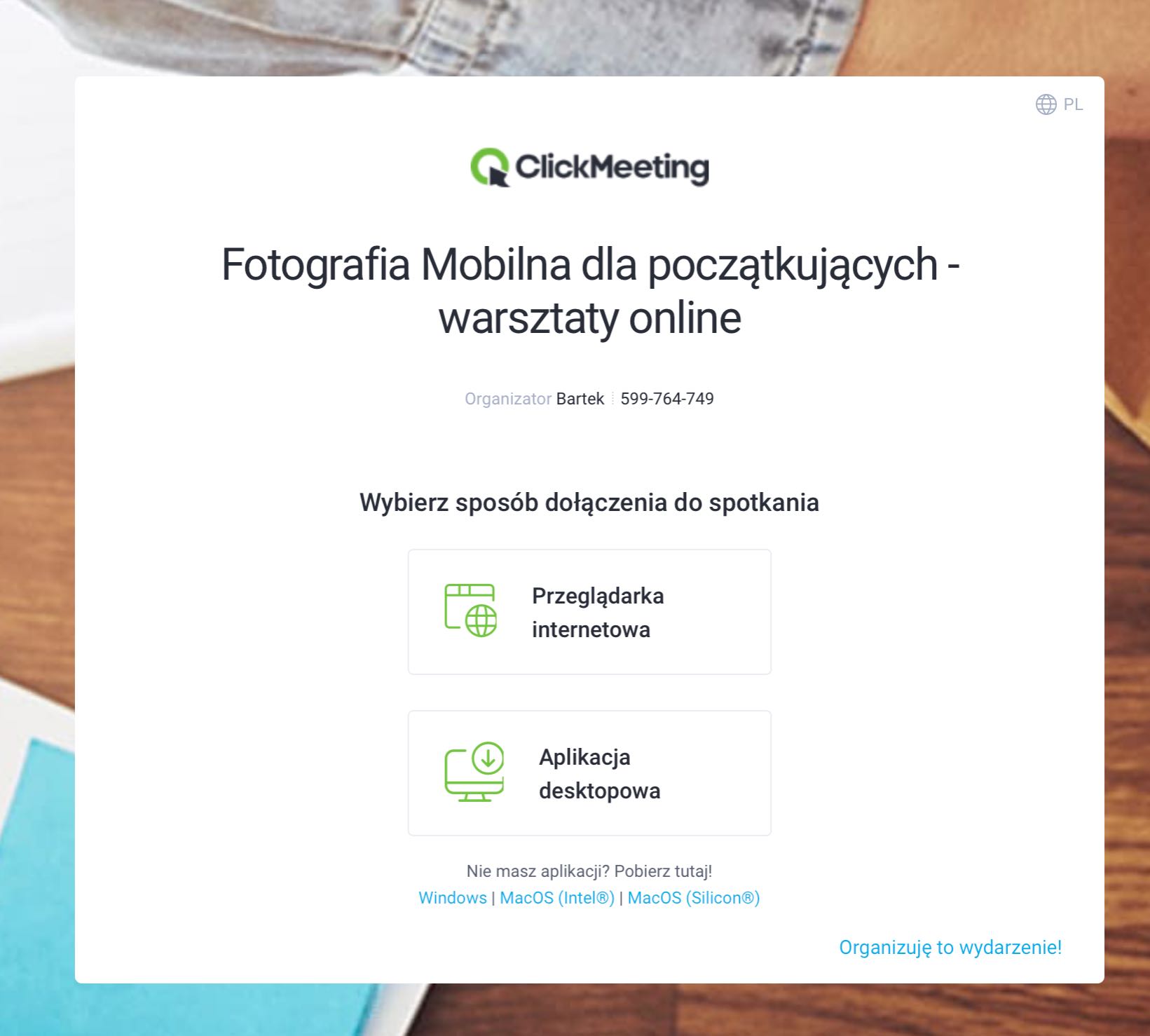 Po wpisaniu swojego imienia oraz adresu e-mail przeglądarka przeniesie Cię do pokoju wydarzenia. Na 30 minut przed startem pokój będzie już aktywny. Do tego czasu zobaczysz taki ekran.