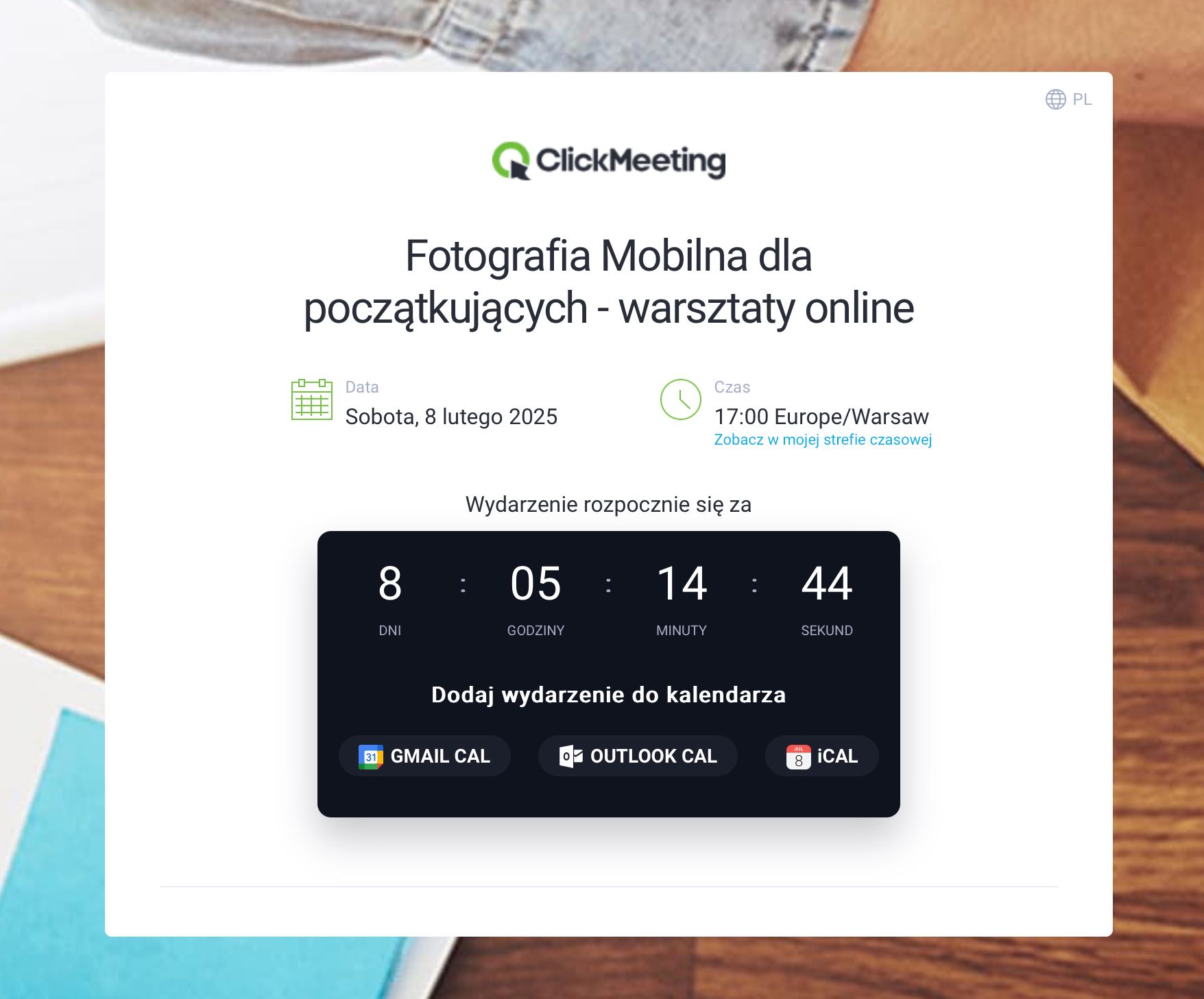 Bardzo się cieszę, że udało Ci się zakupić dostęp do kursu Fotografia Mobilna dla początkujących, który odbędzie się 8 lutego o godzinie 17:00. Jeśli nie możesz być z jakiegoś powodu na wydarzeniu, to nie martw się! Całe spotkanie będzie zapisane, dlatego 48 godzin po zakończeniu spotkania w panelu kursanta pojawi się film, do którego będzie można wrócić w dowolnym momencie.